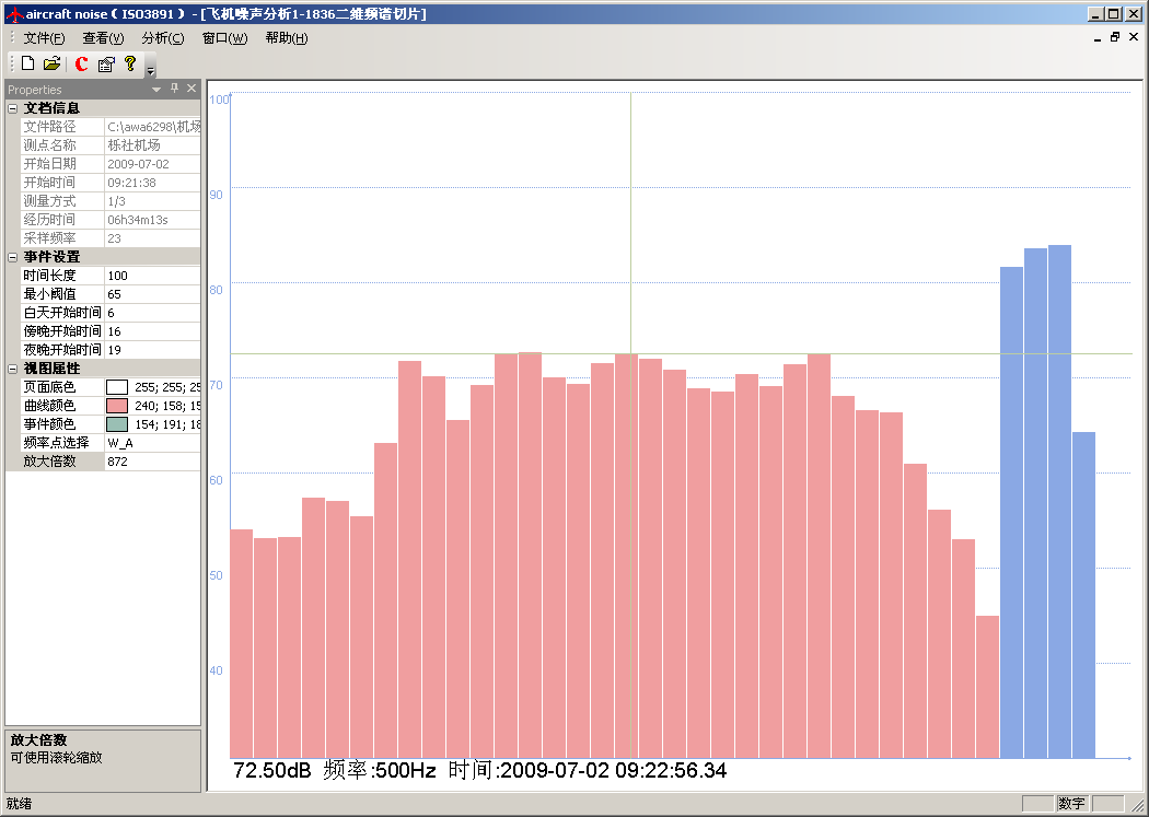 分析软件可以根据用户设定的判定依据自动判定出每一架次的飞行事件,按精密法或简易法计算出每一架次的有效感觉噪声级LEPN,再自动计算出全天的计权等效连续感觉噪声级LWECPN。还可根据各测点的测量结果或预测结果自动绘制噪声等值线图,生成报告。